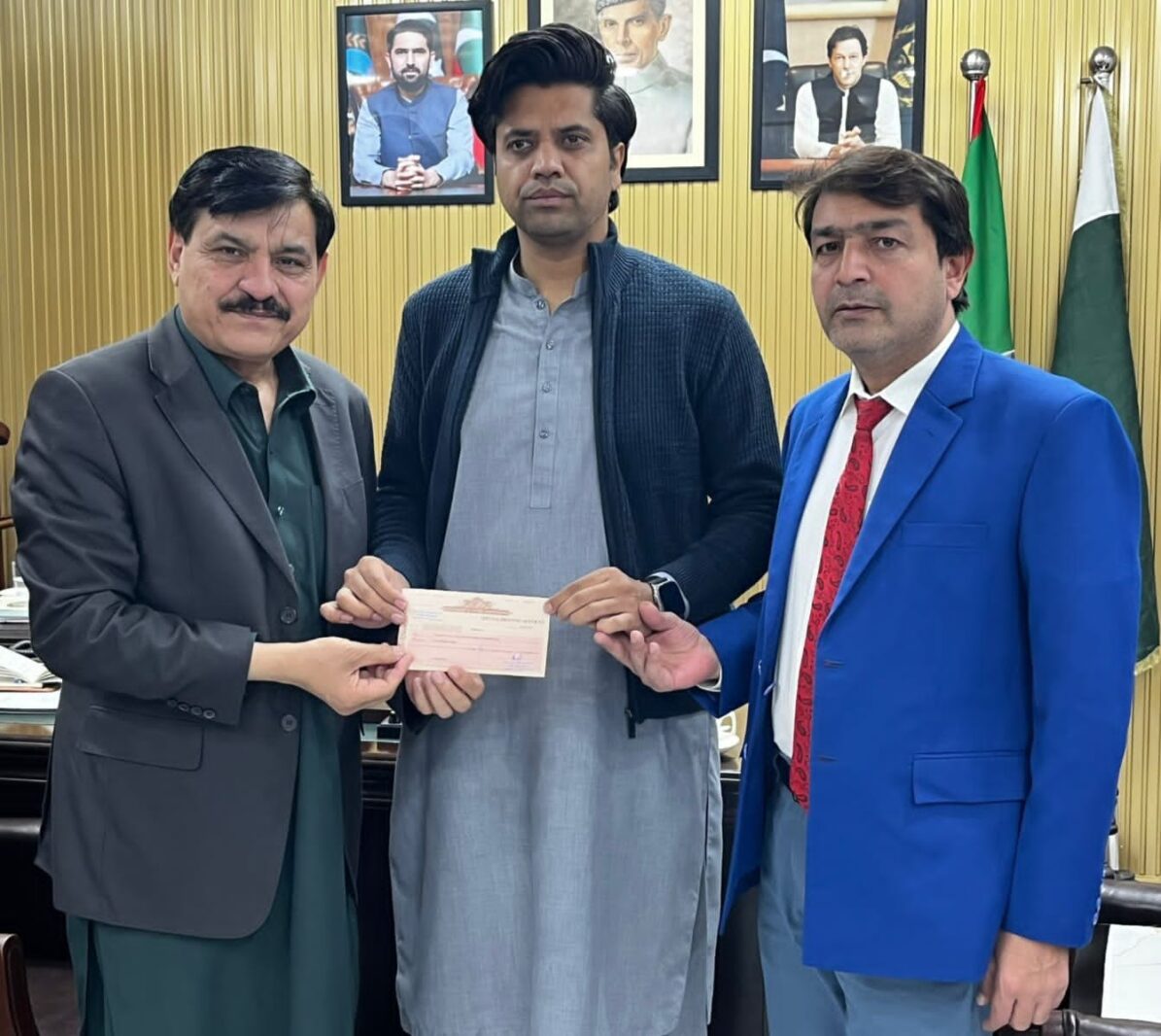 Staff Reporter Peshawar: The cheque of Rs2 million announced by Chief Minister Khyber Pakhtunkhwa Muhammad Sohail Afridi for the Peshawar…