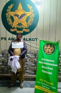 2.Near Dry Port Chowk, Sialkot, 300 grams of hashish were seized from two suspects.