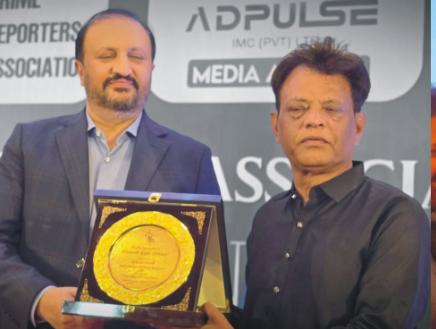 On the occasion, the Crime Reporters Association presented traditional and cultural gifts to the IG Sindh. Syed Imtiaz-ul-Haq Bukhari was awarded a commemorative shield by IG Sindh Javed Alam Odho and CRA President Sameer Qureshi. Shields were also presented to other police officers and spokespersons in recognition of their services.