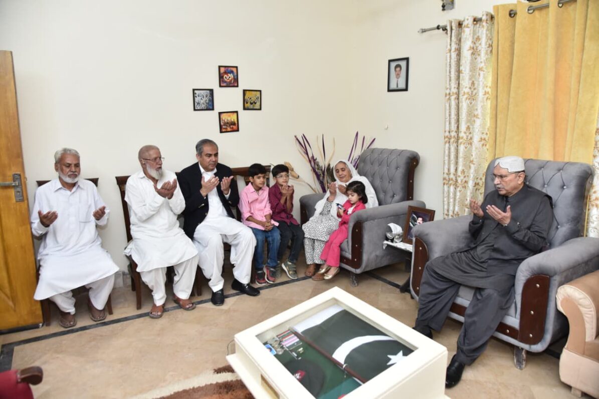 ISLAMABAD: President Asif Ali Zardari visited the residence of Lt Col Junaid Shaheed in Rawalpindi today to offer condolences to the bereaved family.