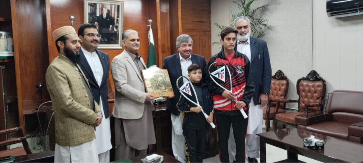 Peshawar (Sports Reporter) Former squash champion and chairman of the provincial squash association Qamar Zaman yesterday presented the Pride of Performance Trophy given by the Pakistan Squash Federation to the president of the Khyber Pakhtunkhwa Squash Association Dawood Khan. On this occasion, president Dawood Khan and Qamar Zaman also distributed squash rackets to the best squash players. Talking to the media on this occasion, the president of the provincial squash association Dawood Khan said that our junior players are performing well at the international level and behind this is hard work day and night. We started working from the grassroots level and today our players are making the country and nation famous all over the world and this trend will continue in the future. He said that with the efforts of Qamar Zaman and his team, we were given the Pride of Performance Trophy for the seventh time by the Pakistan Squash Federation, which is a great honor. He said that twenty-six tournaments are being organized annually. And we are working hard under your help, while we have not received any grant for more than five years. He said that inter-schools, colleges, and universities are also conducting and we are getting good players. He said that the number of girls players has especially increased and girls are also showing good performance. Squash legend Qamar Zaman congratulated the President of the Association, Dawood Khan, and said that it is the result of his efforts that the Federation has honored us again and we will continue to work hard in the future.